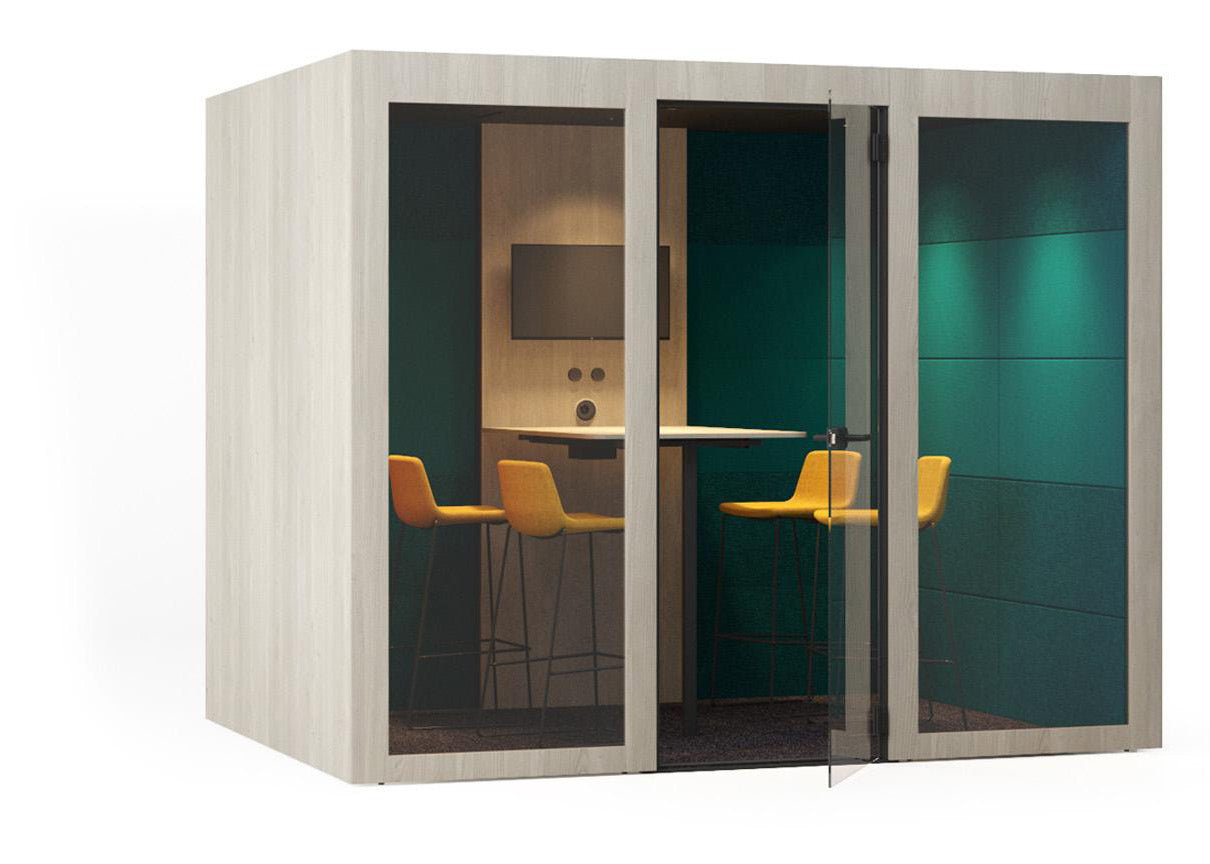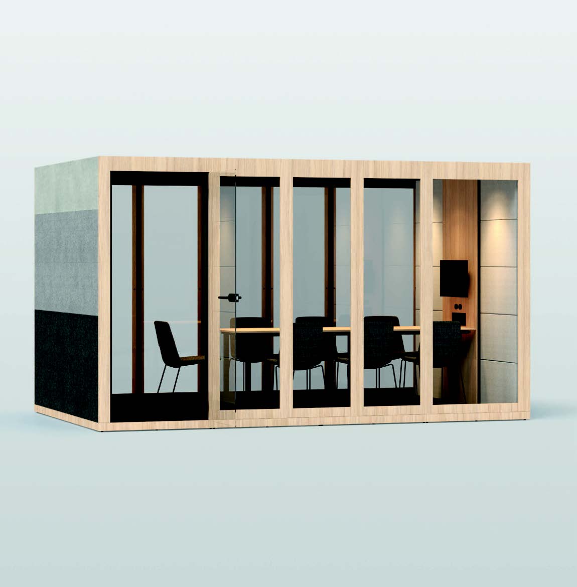 Dette rummelige akustiske rum, designet til otte brugere, sikrer en høj grad af komfort uden at begrænse din bevægelsesfrihed.